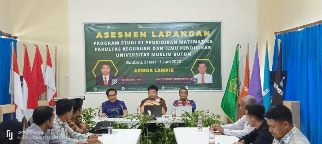 UMU Online-Universitas Muslim Buton, laksanakan Assesment Lapangan Akreditasi Program Studi Pendidikan Matematika FKIP Universitas Muslim Buton pada tanggal 31 Mei-01 Juni 2023 di Kampus Universitas Muslim Buton Jalan Betoambari nomor 146 Bonebone, Batupoaro Kota BauBau.