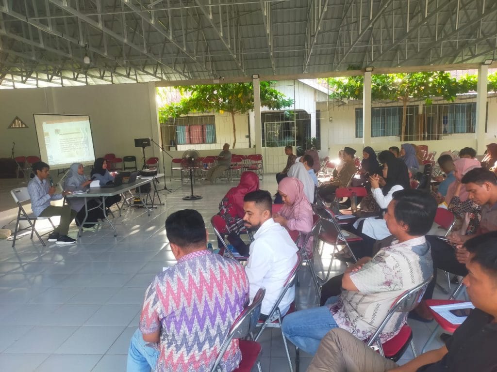 Memasuki sesi diskusi terbuka, suasana menjadi lebih dinamis. Para dosen peserta BIMTEK aktif mengajukan pertanyaan tentang isu-isu penelitian terkini, seperti bagaimana menentukan gap riset, bagaimana memastikan kebaruan (novelty), bagaimana mengolah metode penelitian yang sederhana namun kuat, serta bagaimana memetakan relevansi penelitian terhadap kebutuhan masyarakat lokal. Pemateri menanggapi setiap pertanyaan dengan rinci, menggunakan pendekatan dialogis, dan menyisipkan pengalaman nyata dalam proses penelitian.