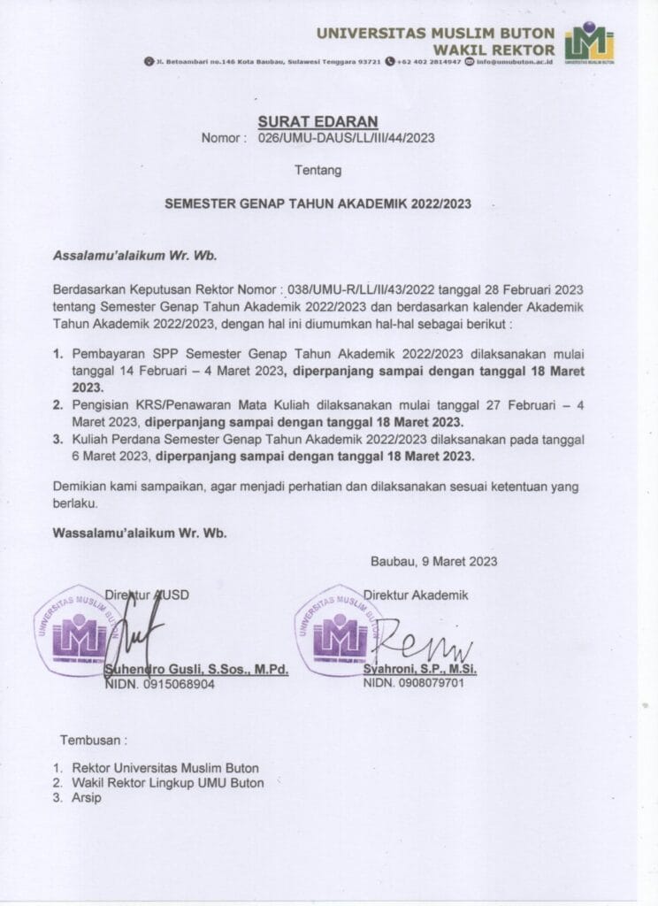 Surat Edaran Semester Genap